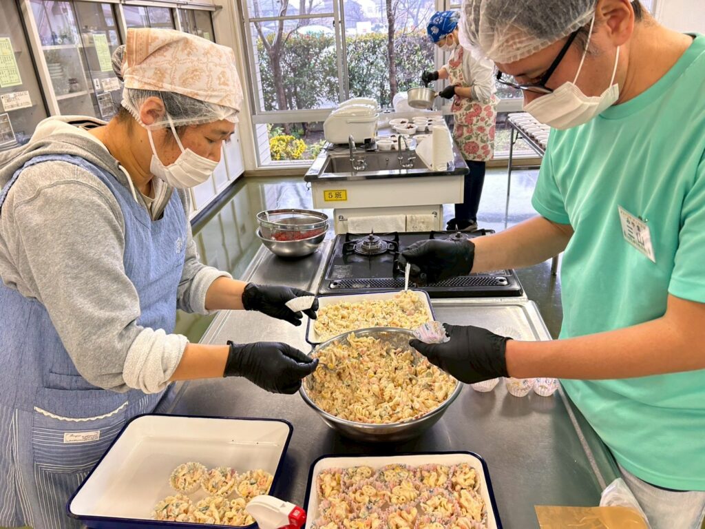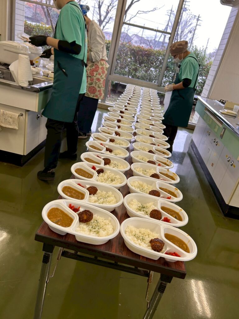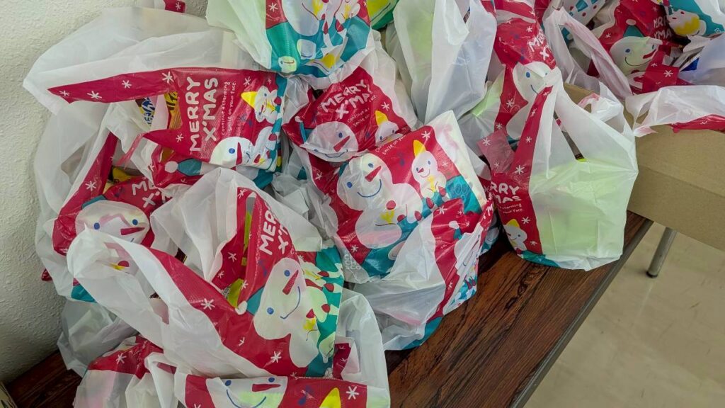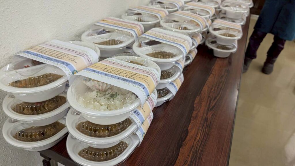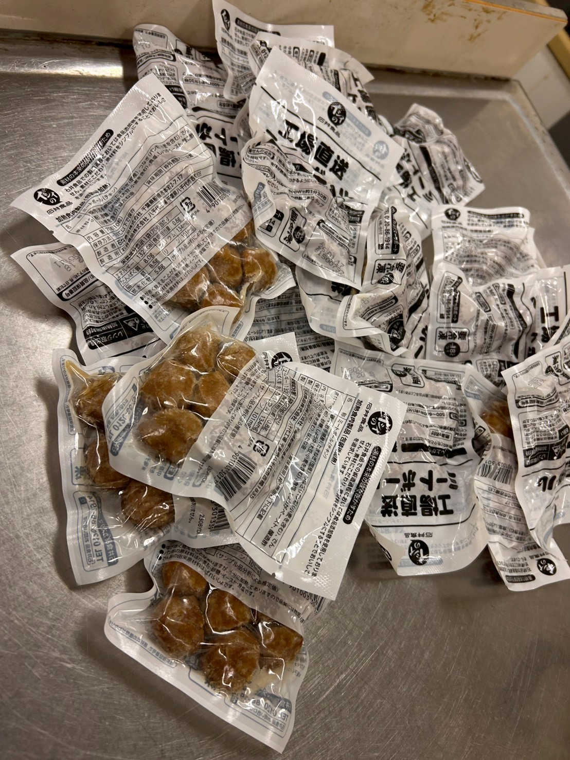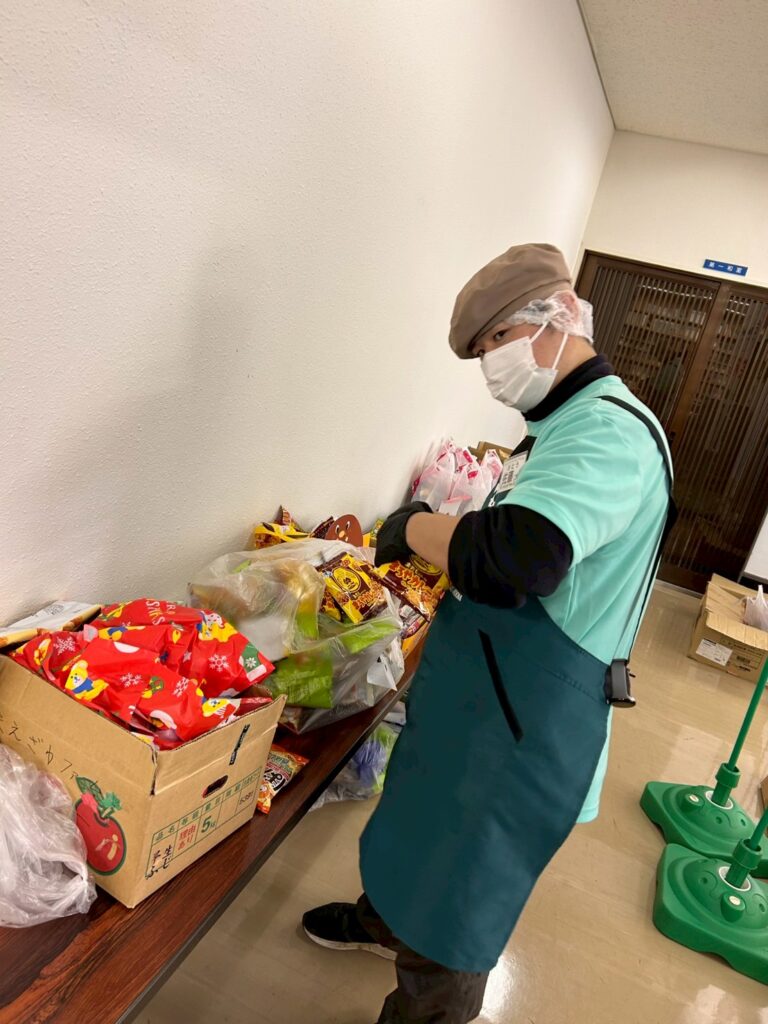 食堂オリジナルのお菓子の袋づめ(文明堂さんご提供)も一緒にお配りさせて頂きました。
