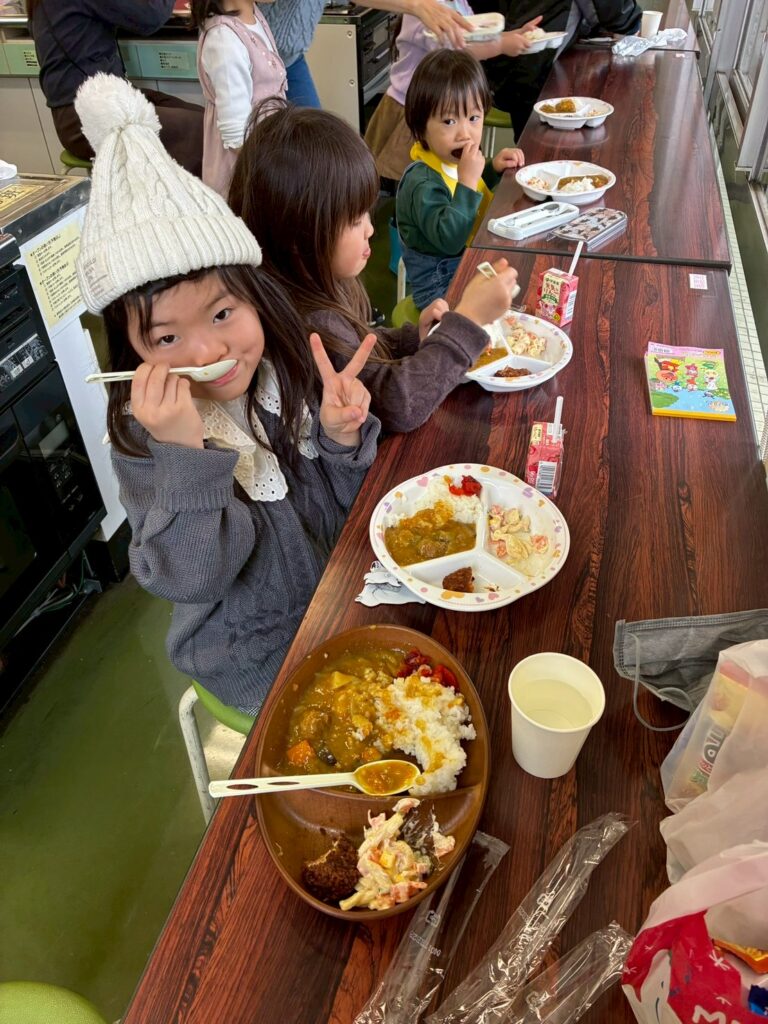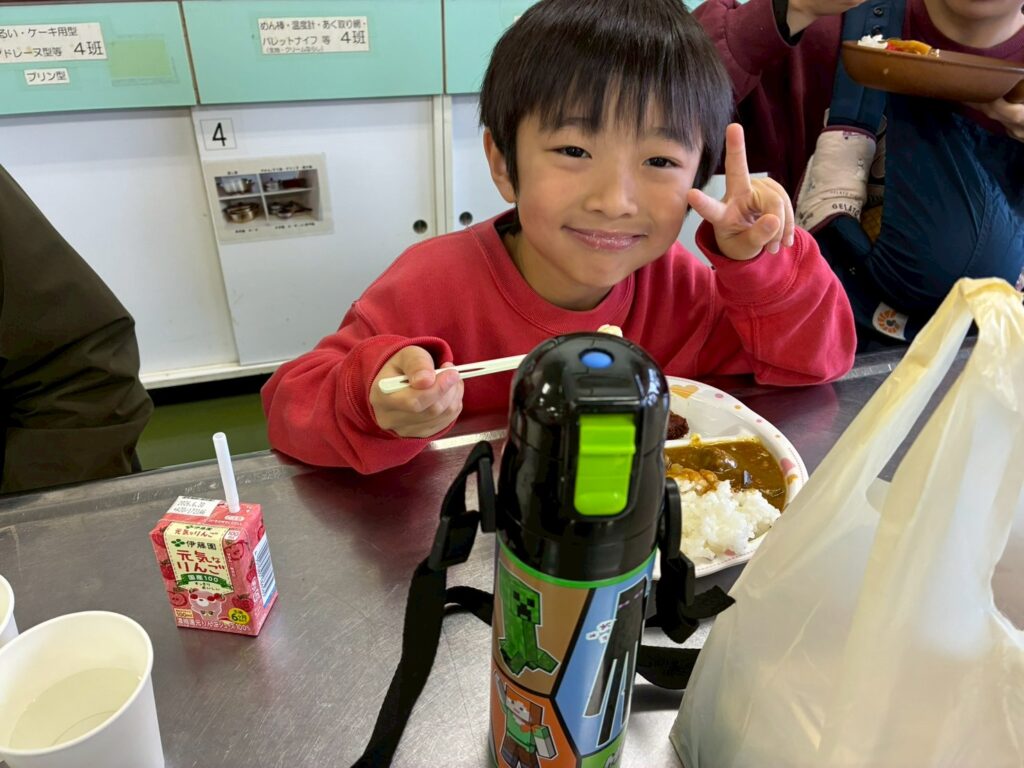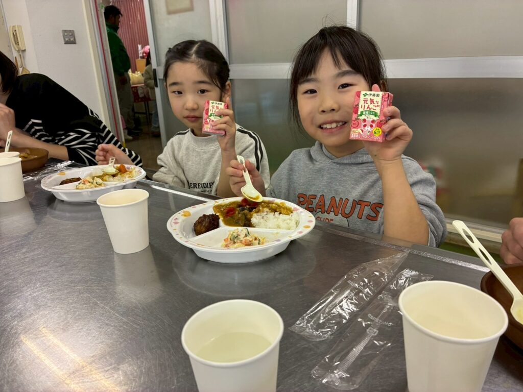 篠原欣子記念財団さんからもリンゴジュースのご提供があり、カレーと一緒に食べて頂きました。
